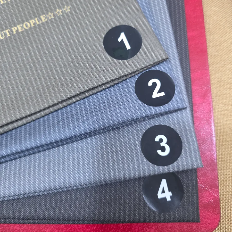 - الألوان: تدرجات الرمادي والأسود المنقط (رقم 1 إلى 4).